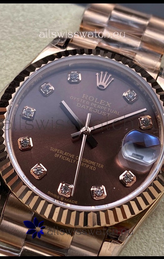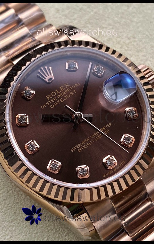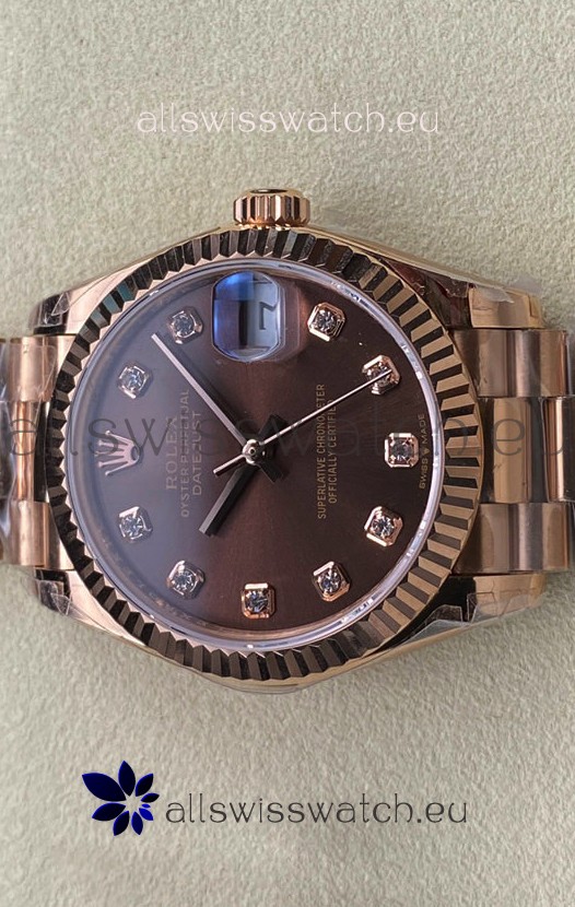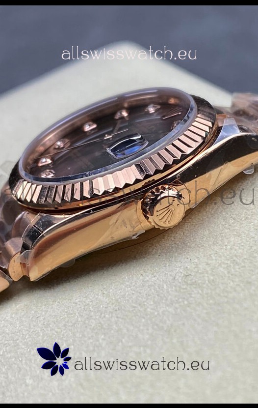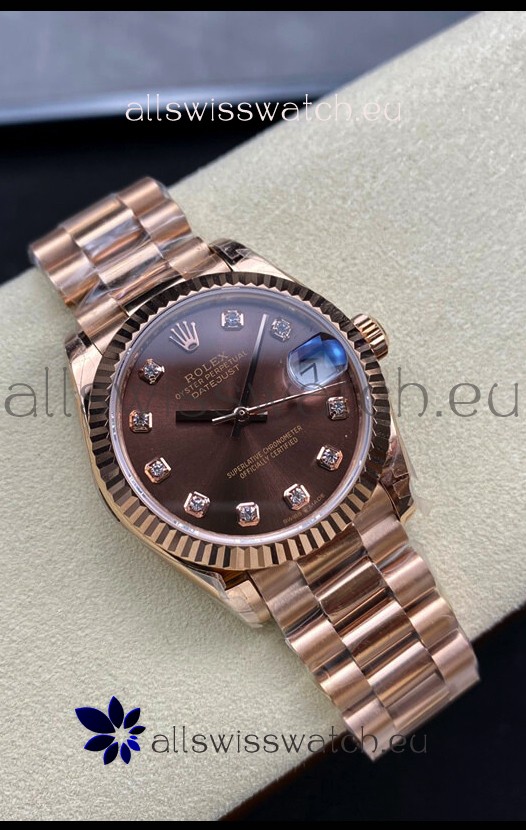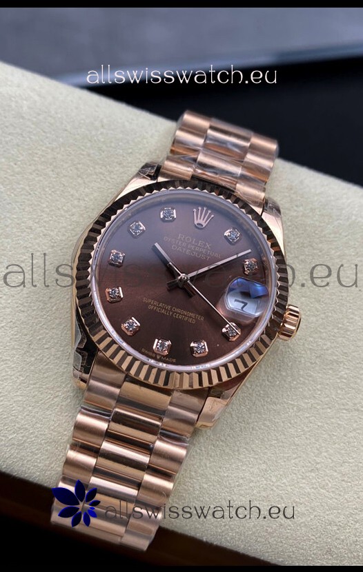 Rolex Datejust 31MM Swiss Replica in 904L Steel Rose Gold Chocolate Dial 1:1 Mirror Replica