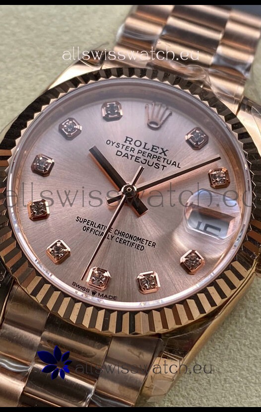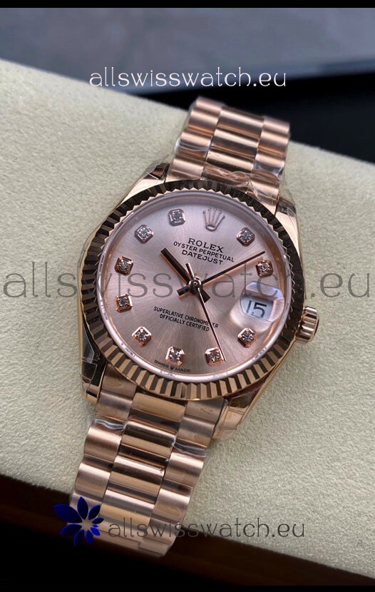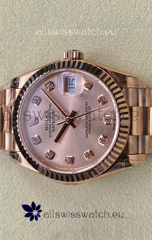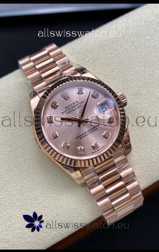 Rolex Datejust 31MM Swiss Replica in 904L Steel Rose Gold Dial 1:1 Mirror Replica