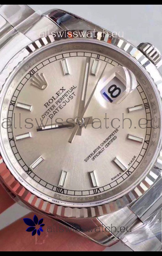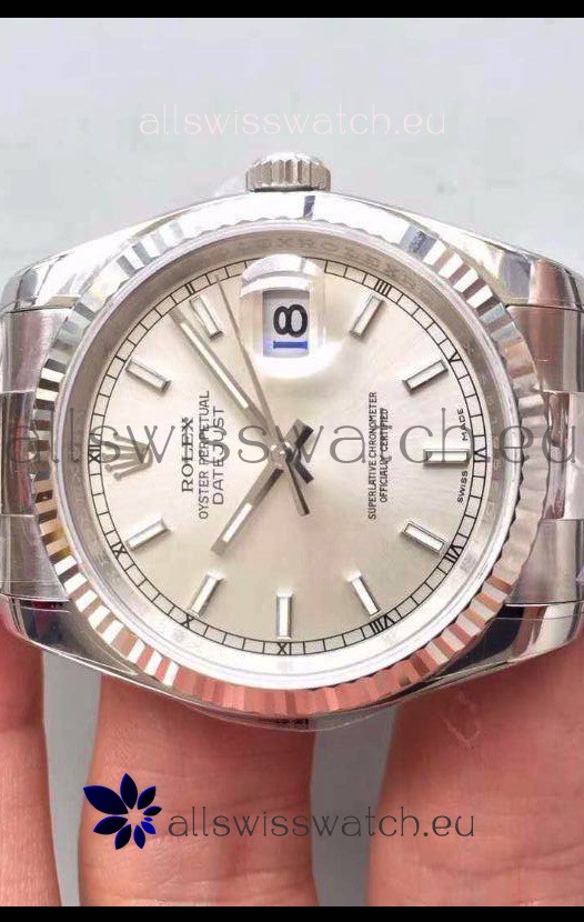 Rolex Datejust 36MM Cal.3135 Movement Swiss Replica Watch in 904L Steel / Steel Dial