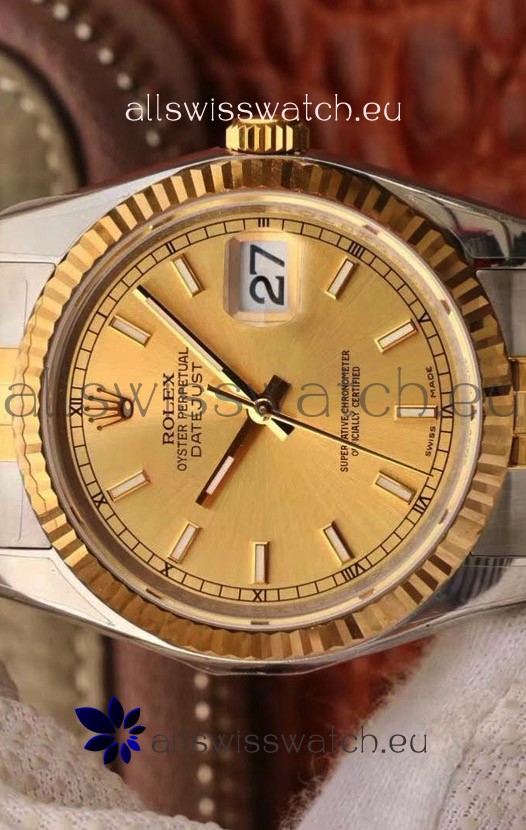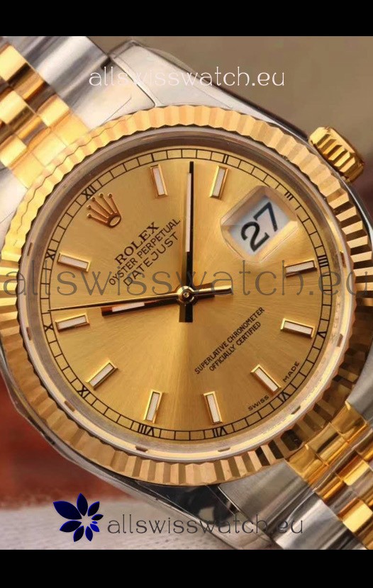 You're reviewing: Rolex Datejust 36MM Cal.3135 Movement Swiss Replica Watch in 904L Steel Two Tone Casing Gold Dial