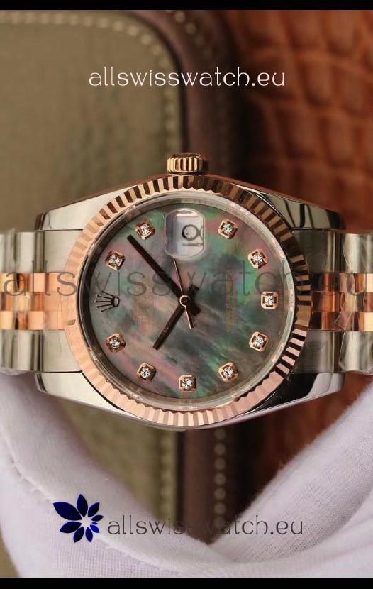 You're reviewing: Rolex Datejust 36MM Cal.3135 Movement Swiss Replica Watch in 904L Steel Two Tone Casing Pearl Dial