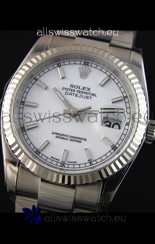 Top Grade Rolex Datejust 36MM Cal.3135 Movement Swiss Replica White Dial Oyster Strap - Ultimate 904L Steel Watch with Free Shipping and 1 year warranty