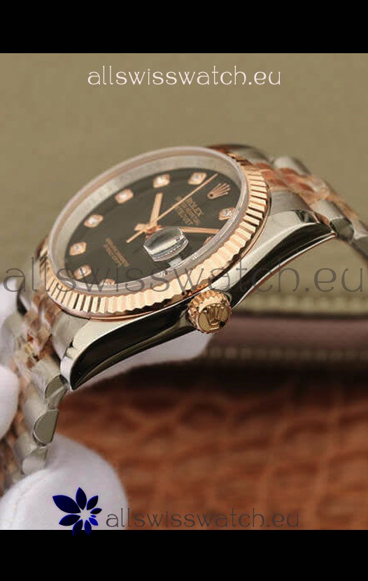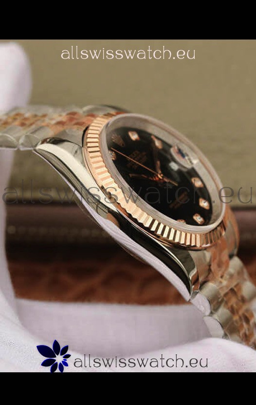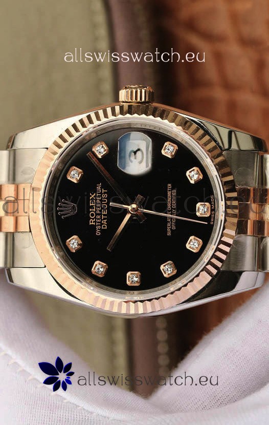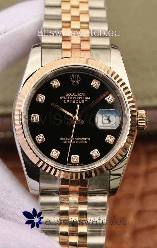 Rolex Datejust 36MM ETA-3135 Movement Swiss Replica in 904L Two Tone Black Dial