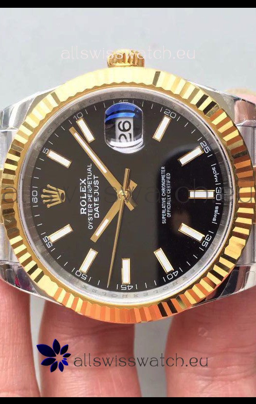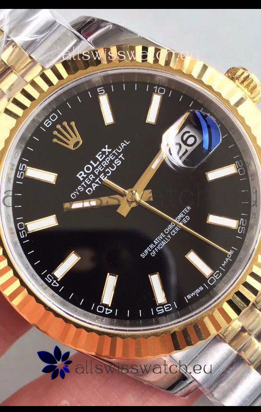Rolex Datejust 41MM Cal.3135 Movement Swiss Replica Watch in 904L Steel Two Tone Black Dial