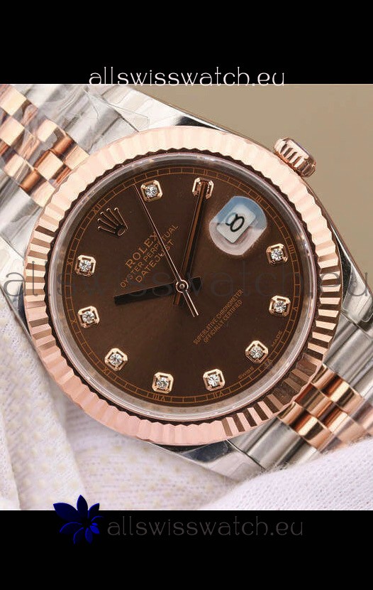 You're reviewing: Rolex Datejust 41MM Cal.3135 Movement Swiss Replica Watch in 904L Steel Two Tone Brown Dial