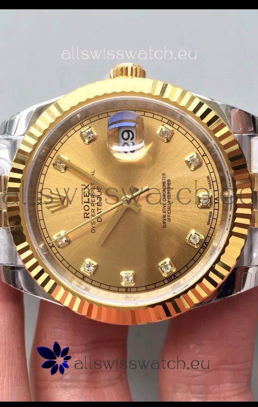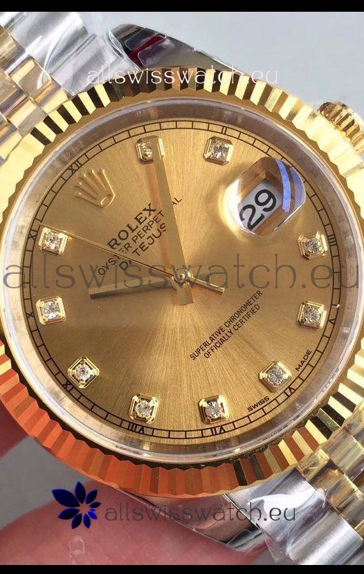 You're reviewing: Rolex Datejust 41MM Cal.3135 Movement Swiss Replica Watch in 904L Steel Two Tone Gold Dial