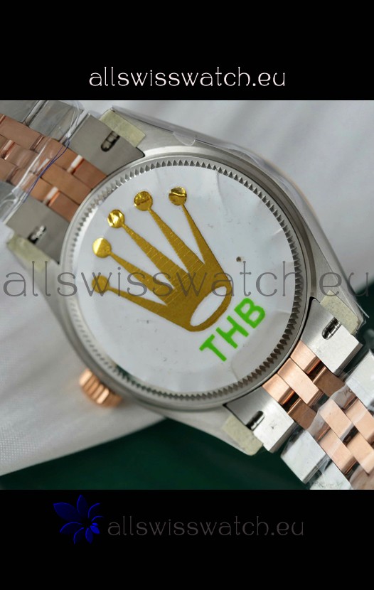 18K Rose Gold Plating on 904L Stainless Steel Two Tone Polished Case with Bezel as per the original.