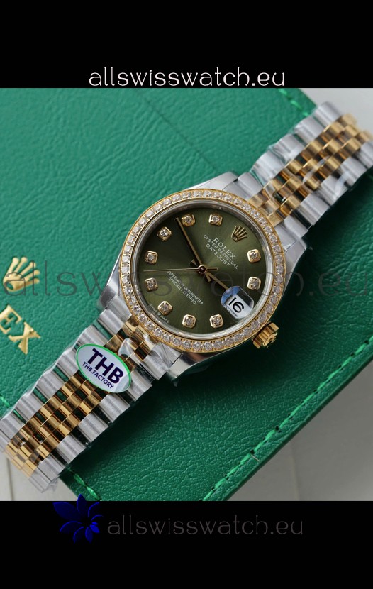 Rolex Datejust Cal.3235 Movement Super Clone Rose Gold 2 Tone 31MM Green Dial Watch