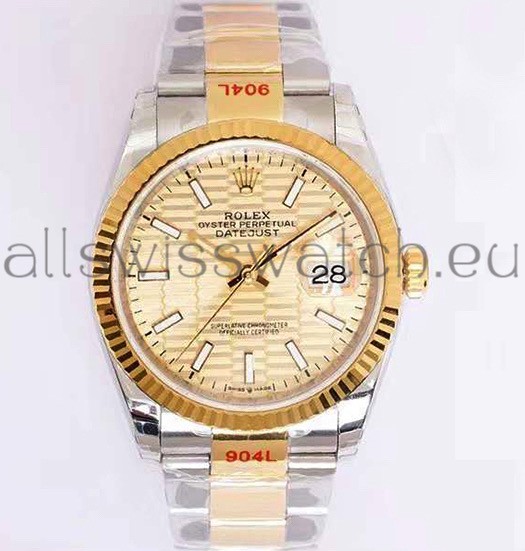 Rolex Datejust Fluted-Motif Dial 41MM Cal.3135 Movement Swiss Replica Watch in 904L Two Tone Casing