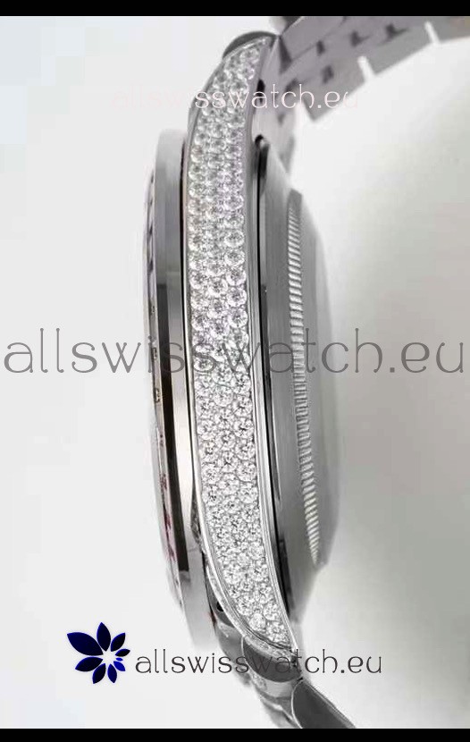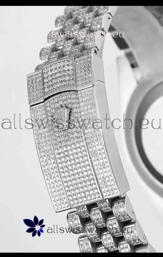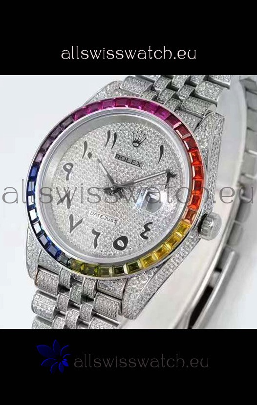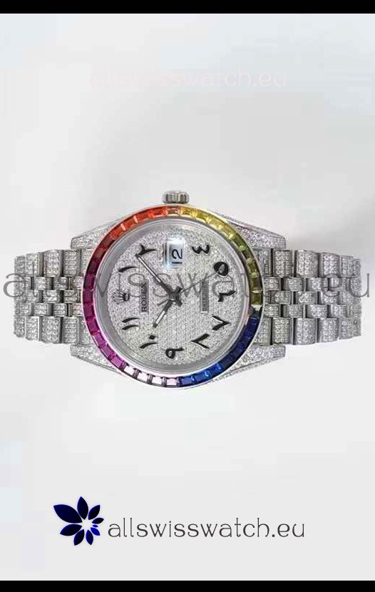 Rolex Datejust Full ICED Out Arabic Numerals Watch in 41MM Casing - 3135 Movement Stainless Steel