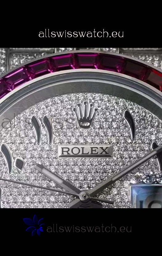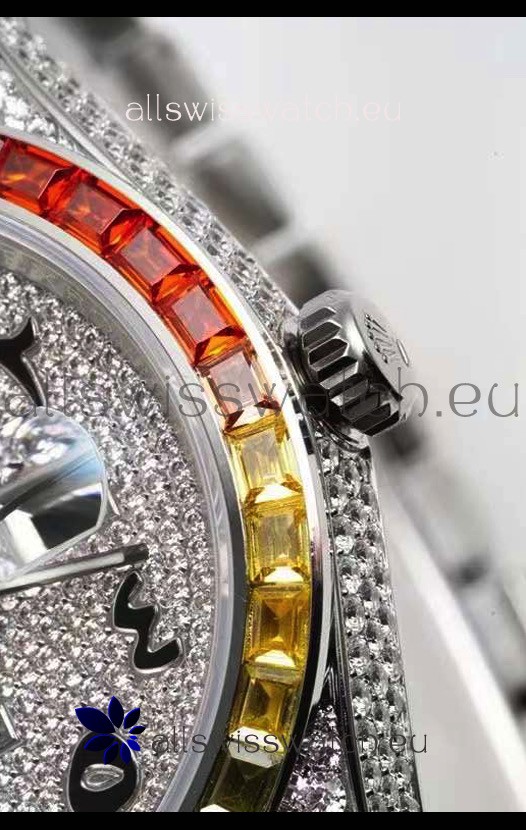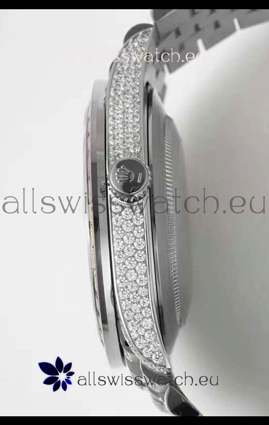 You're reviewing: Rolex Datejust Full ICED Out Arabic Numerals Watch in 41MM Casing - 3135 Movement Stainless Steel
