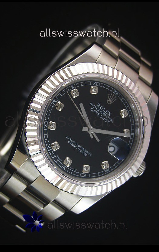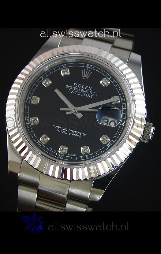 Get your Rolex Datejust II 41MM with Cal.3136 Movement Swiss Replica Watch in Black Dial Diamonds Markers today with 10% discount on 1 Watch purchase and 20% on two or more Watches