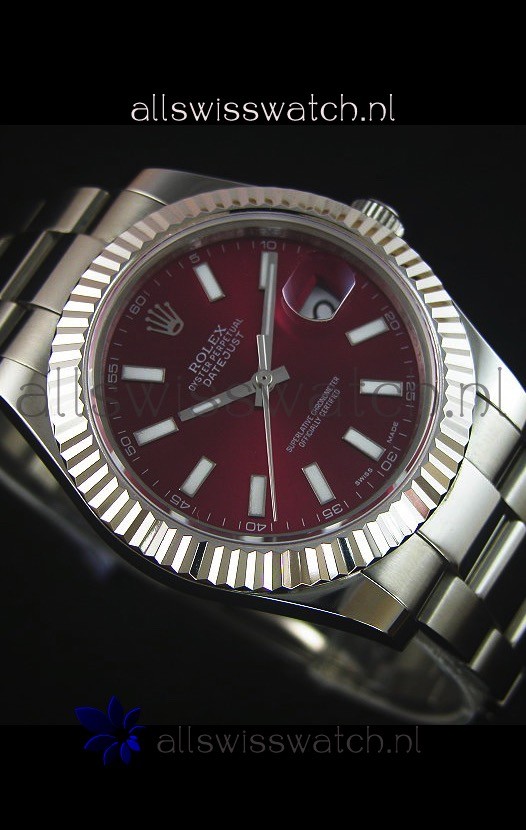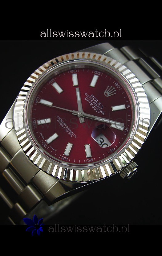 Rolex Datejust II 41MM with Cal.3136 Movement Swiss Replica Watch in Deep Red Dial Stick Markers