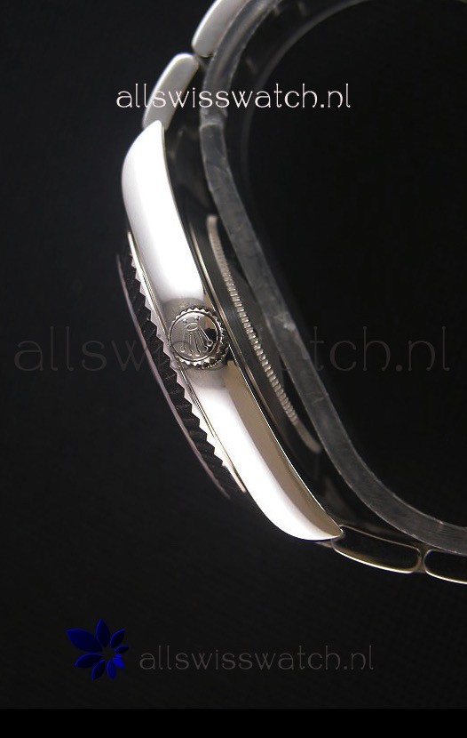 316L Stainless Steel Case with Highly Polished Fluted Bezel to resemble the White Gold Finishing on Rolex Watches