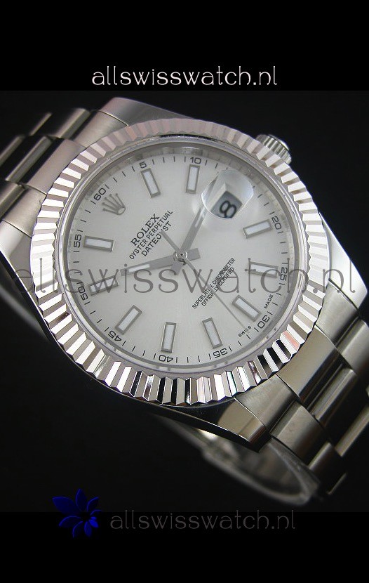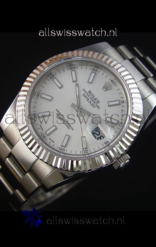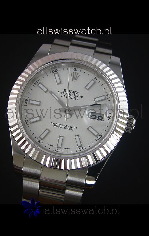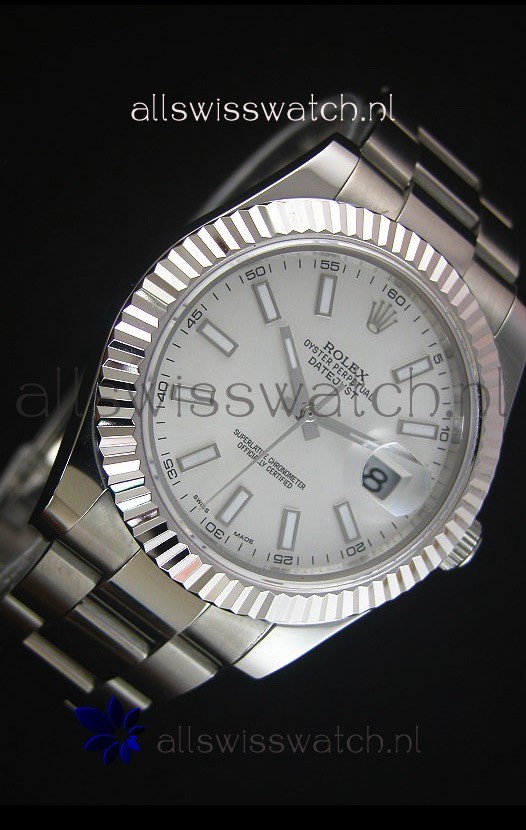 Rolex Datejust II 41MM with Cal.3136 Movement Swiss Replica Watch in White Dial Stick Markers