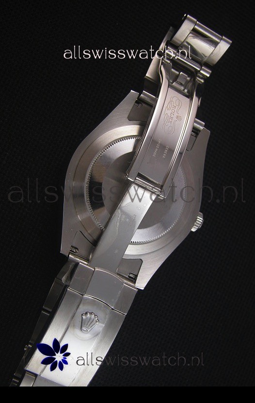 316L Stainless Steel Case with Highly Polished Fluted Bezel to resemble the White Gold Finishing on Rolex Watches