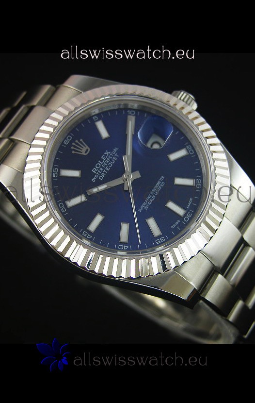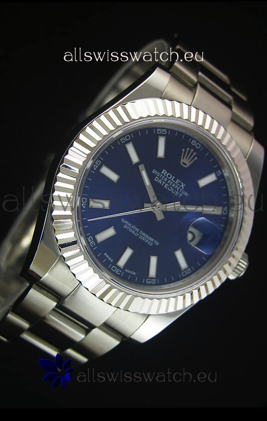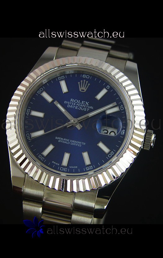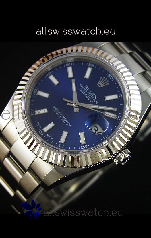 Rolex Datejust Japanese Replica Watch - Blue Dial in 41MM with Oyster Strap
