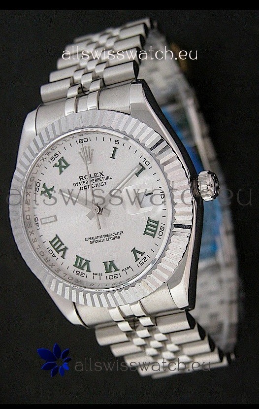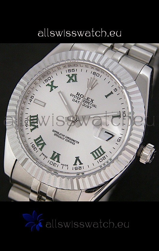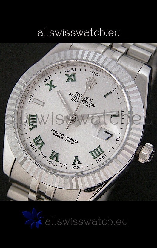Rolex DateJust Japanese Replica Watch in Green Roman Hour Markers