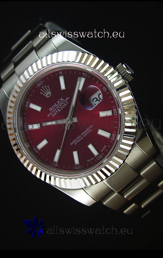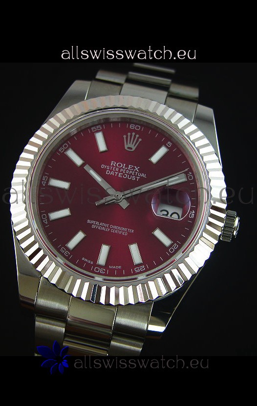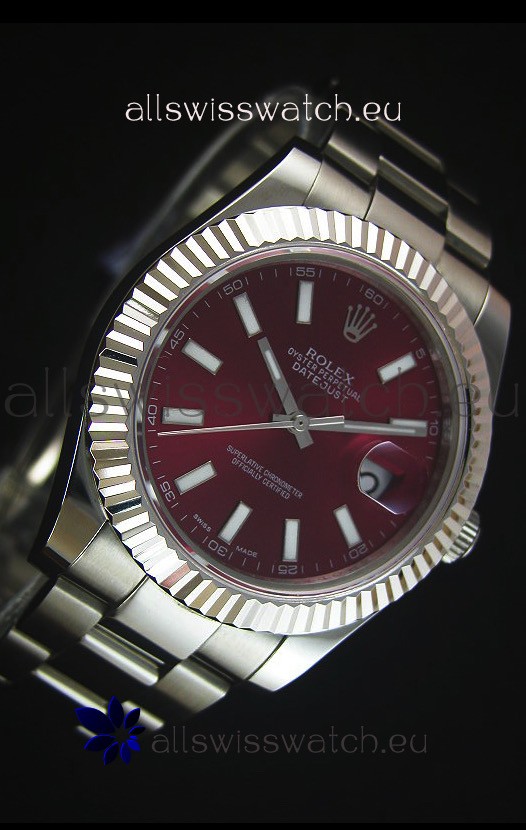 You're reviewing: Rolex Datejust Japanese Replica Watch - Maroon Dial in 41MM with Oyster Strap