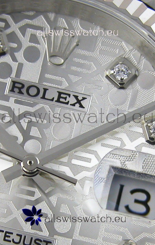 Silver Dial with Diamonds Numerals and Date Indicator at 3 O'Clock