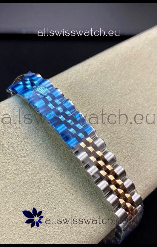 Rose Gold Plating Two Tone on 904L Stainless Steel with Folding Clasp, End links match up Flush with the Case. - A Much Improved Datejust Strap Version