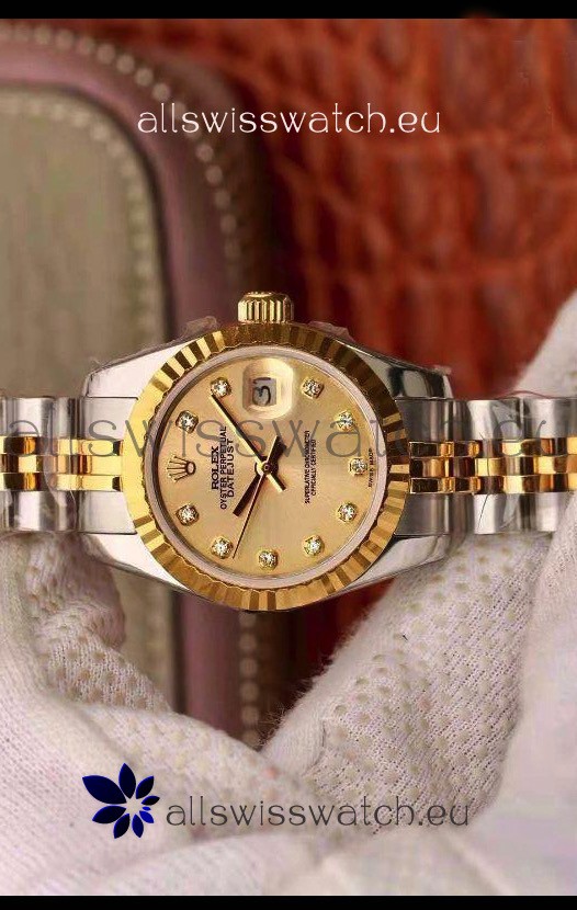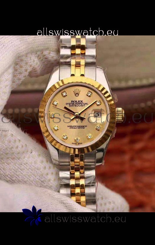 Rolex Datejust Ladies 28MM Cal.3135 Movement Swiss Replica in 904L Steel Yellow Gold 2 Tone Case