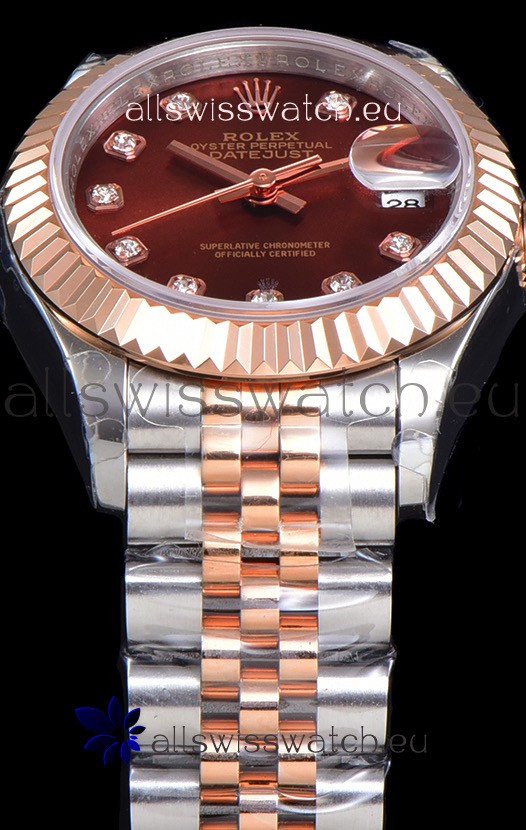 Brown White Dial with Diamonds our Markers with 2.5X Date Maginification Indicator.