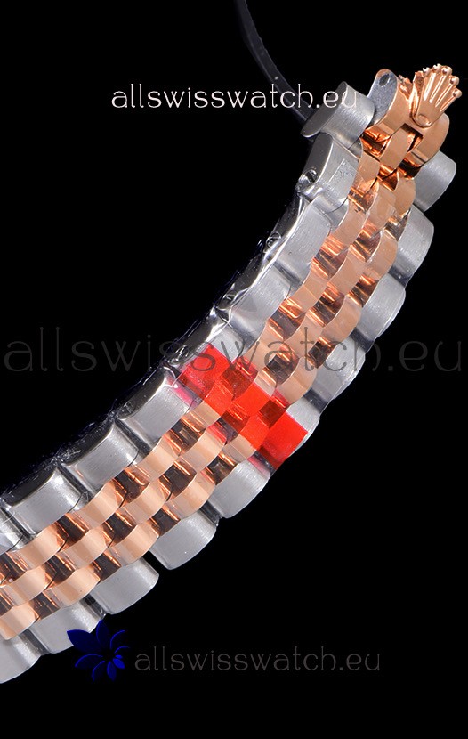 904L Stainless Steel with 18K Gold Plated Jubilee Strap with Folding Clasp, End links match up Flush with the Case. - A Much Improved Datejust Strap Version