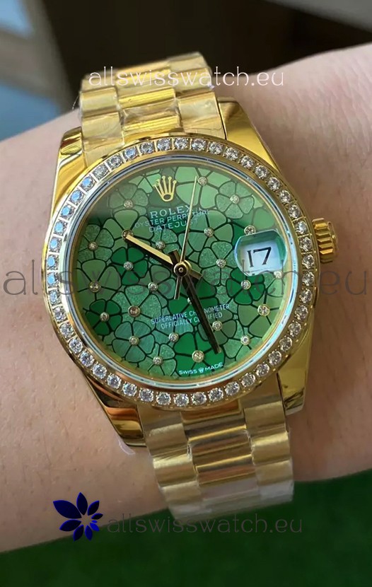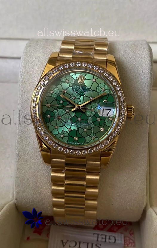 Rolex Datejust M278248 31MM Swiss Replica in Gold - Green Motif Dial 1:1 Mirror Quality