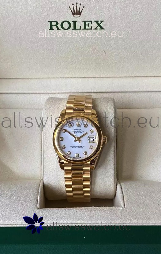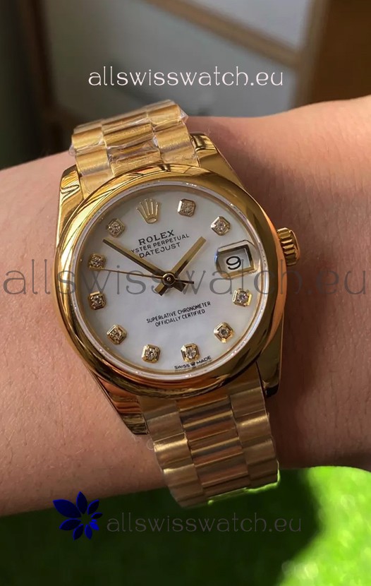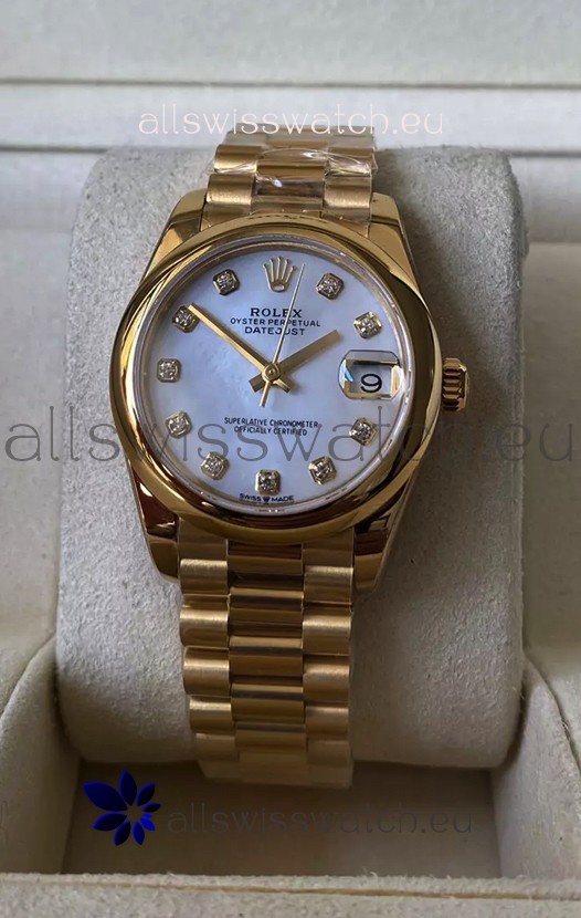 Rolex Datejust M278248 31MM Swiss Replica in Gold - White Pearl Dial 1:1 Mirror Quality