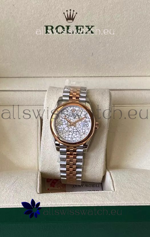 You're reviewing: Rolex Datejust M278381RBR 31MM Swiss Replica Two Tone Rose Gold - Floral Motif Dial 1:1 Mirror Quality