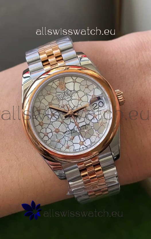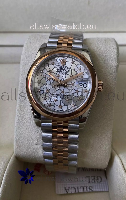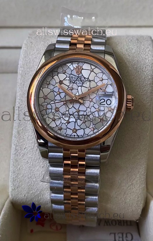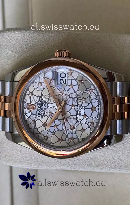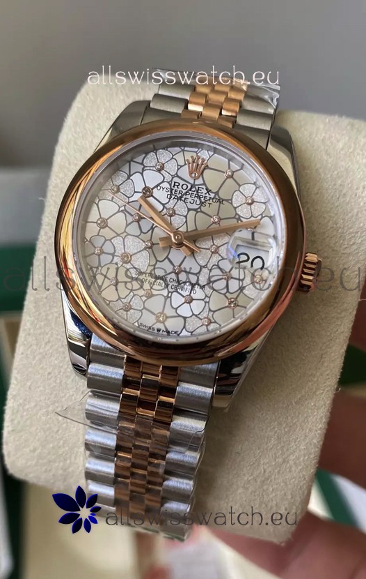 Rolex Datejust M278381RBR 31MM Swiss Replica Two Tone Rose Gold - Floral Motif Dial 1:1 Mirror Quality