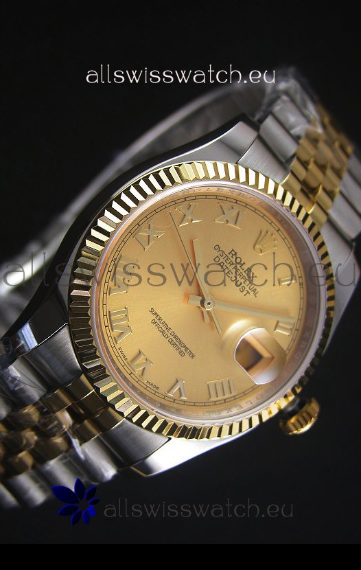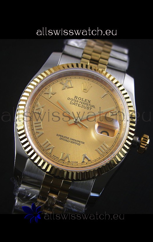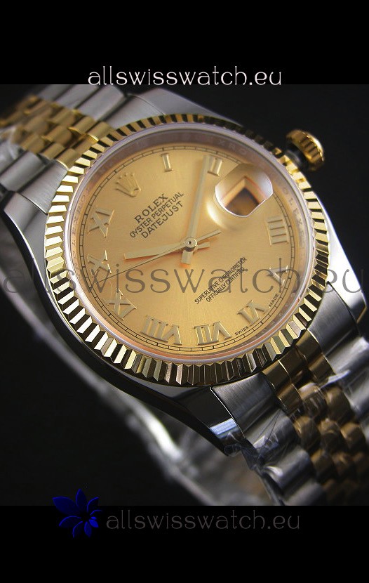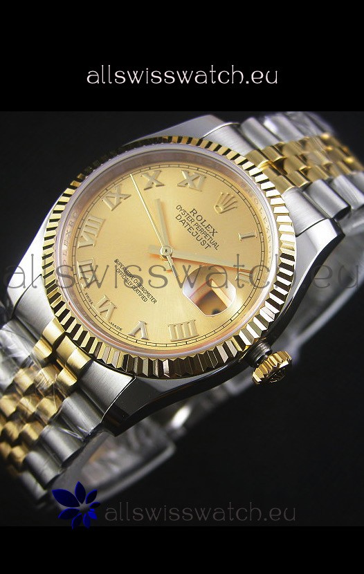 Rolex Datejust Replica Japanese Watch - Two Tone Plating with Gold Dial in 36MM Casing