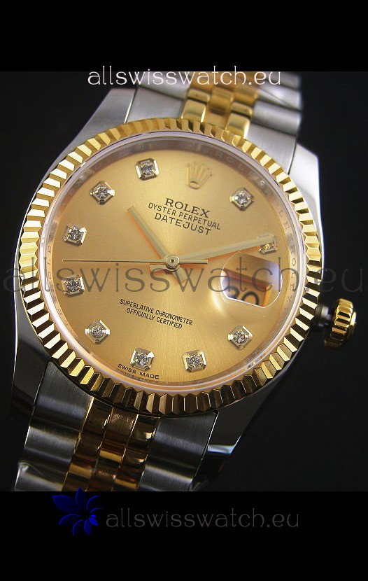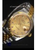 Rolex Datejust Replica Japanese Watch - Two Tone Plating with Gold Dial in 36MM Casing