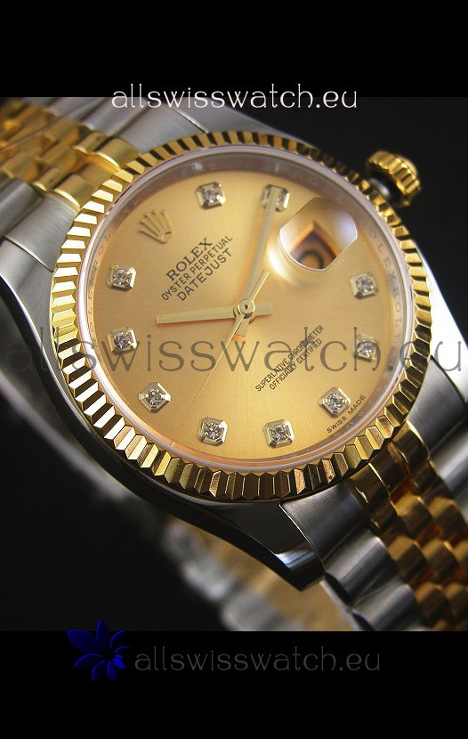 You're reviewing: Rolex Datejust Replica Japanese Watch - Two Tone Plating with Gold Dial in 36MM Casing