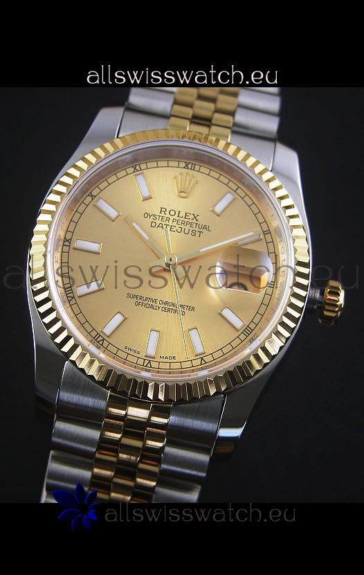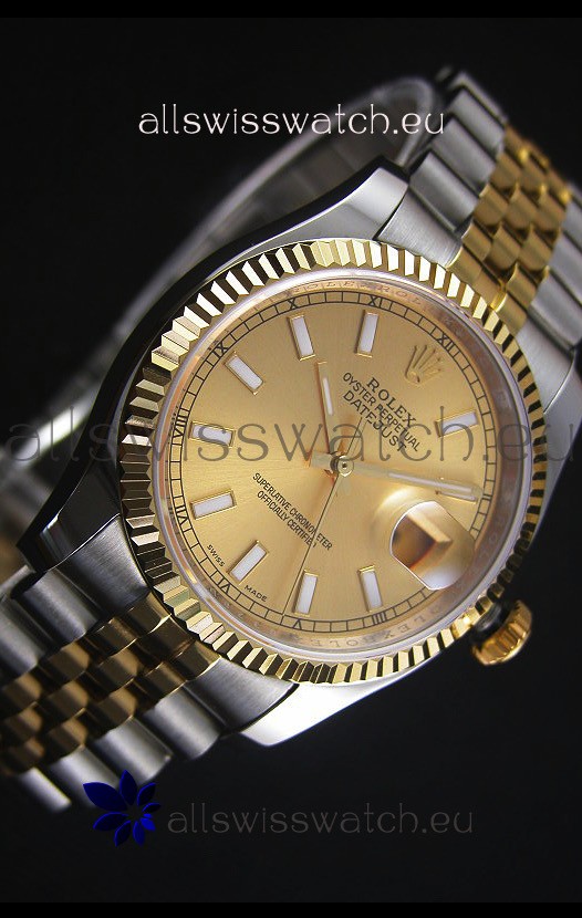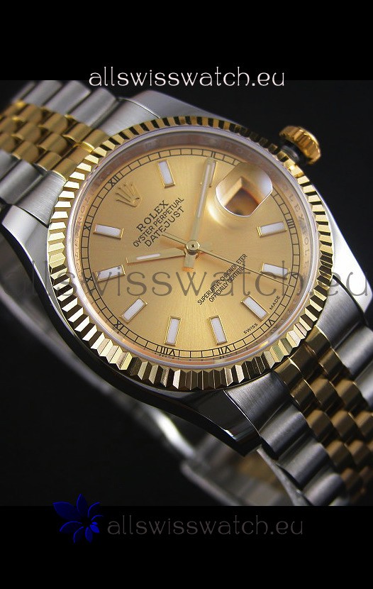 Rolex Datejust Replica Japanese Watch - Two Tone Plating with Gold Dial in 36MM Casing