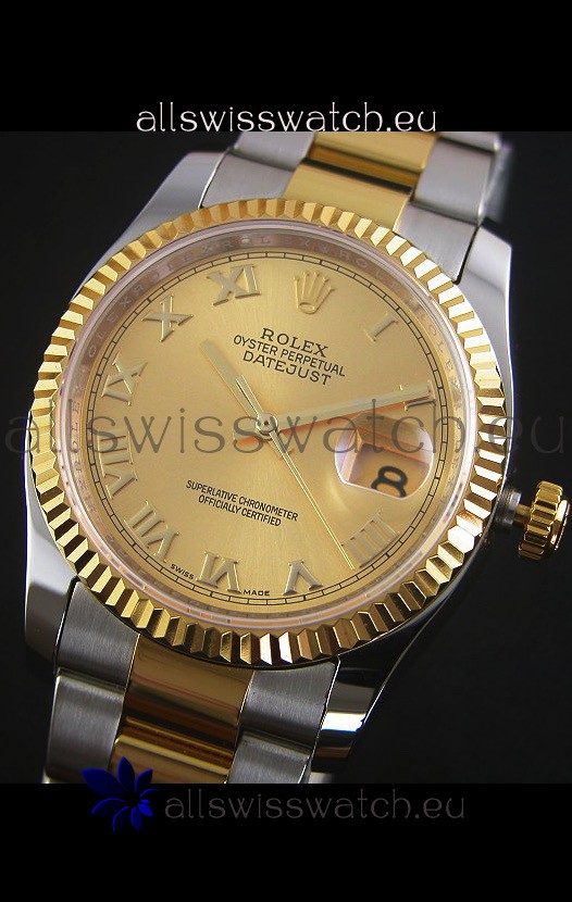 Rolex Datejust Replica Japanese Watch - Two Tone Plating with Gold Dial in 36MM Casing