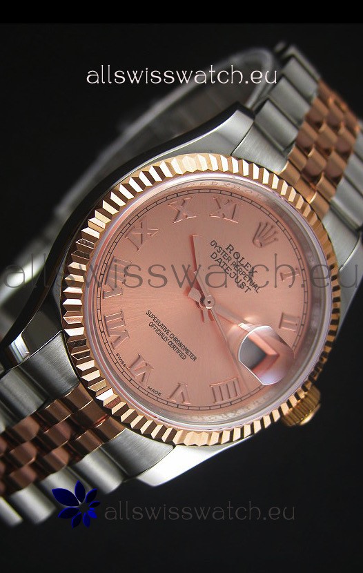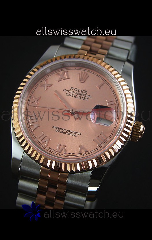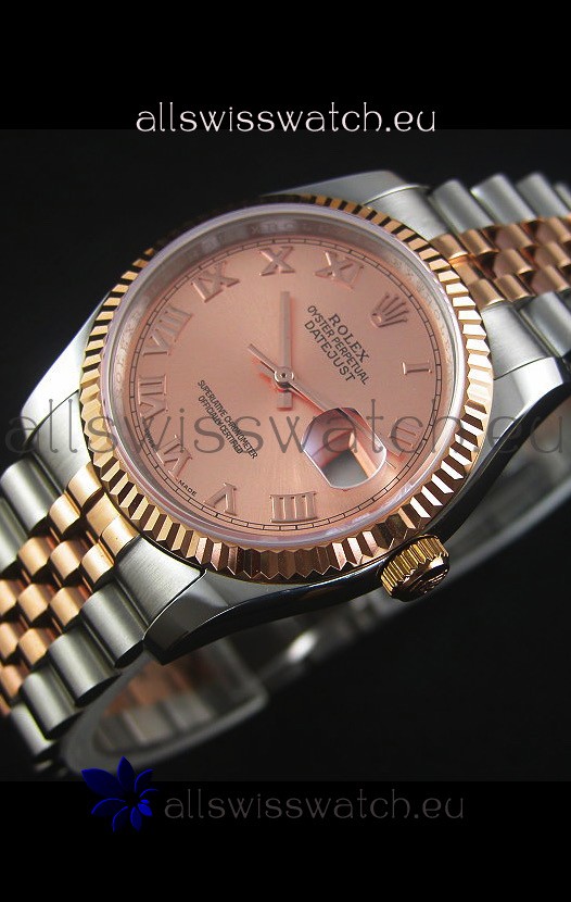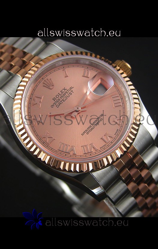 Rolex Datejust Replica Japanese Watch - Two Tone Rose Gold Plating with Champange Dial in 36MM Casing
