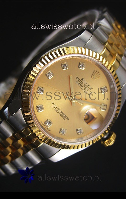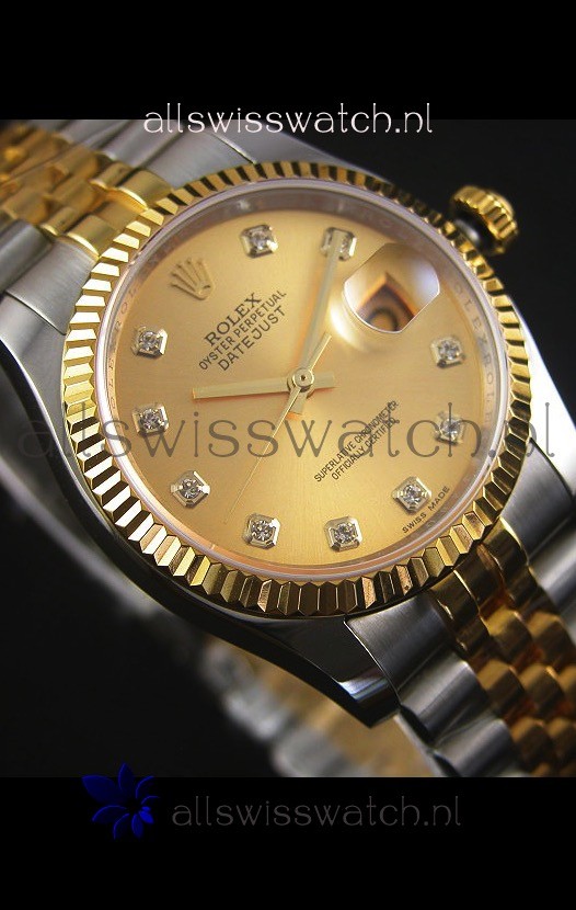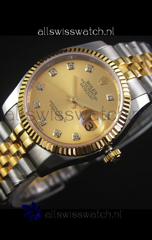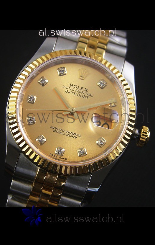 Rolex Datejust Replica Watch Gold Diamonds Dial in 36MM with 3135 Swiss Movement