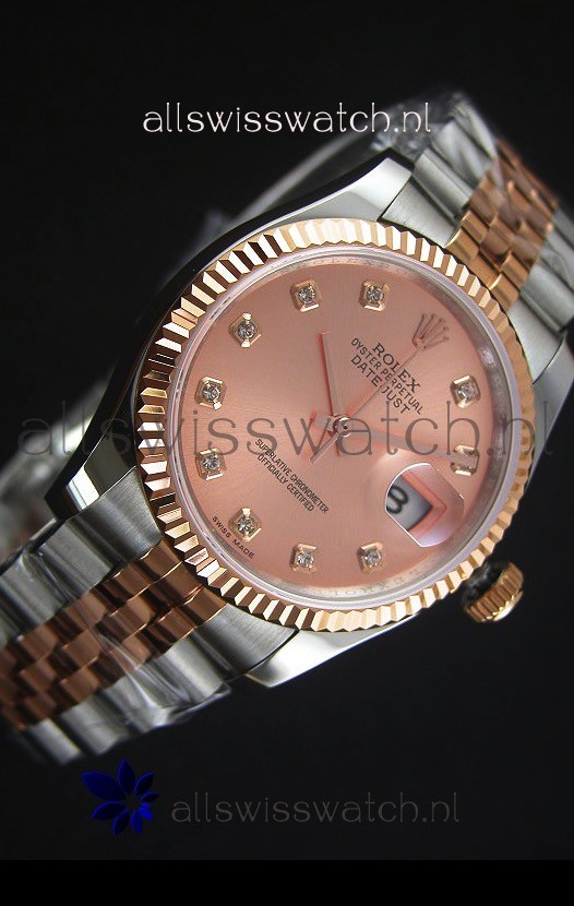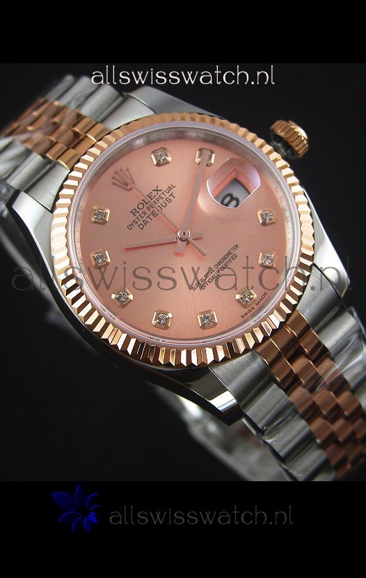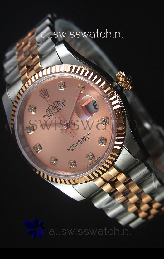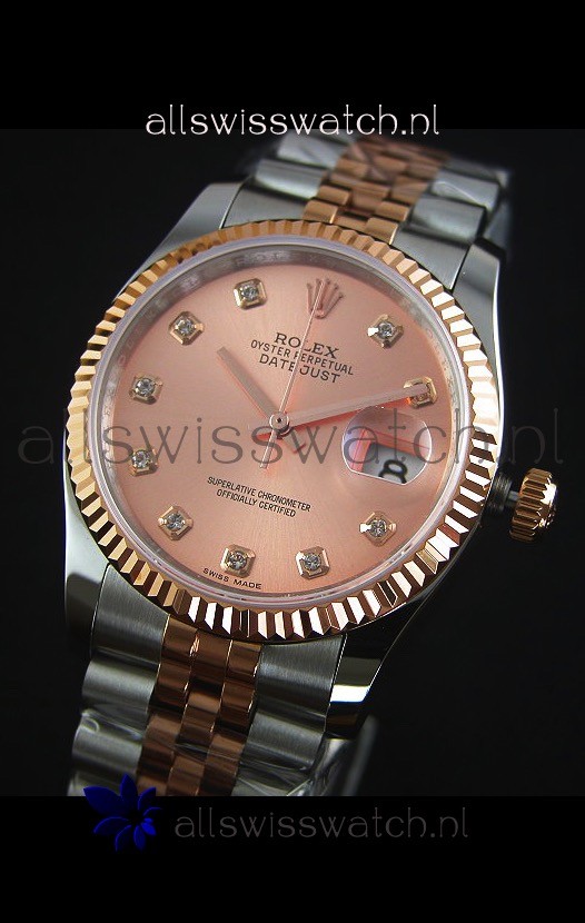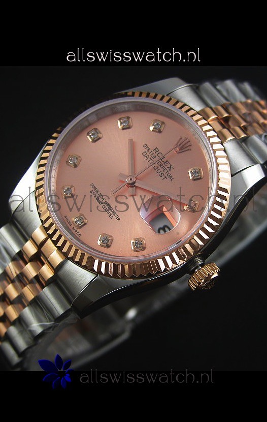 Rolex Datejust Replica Watch Rose Gold with Diamonds Dial in 36MM with 3135 Swiss Movement