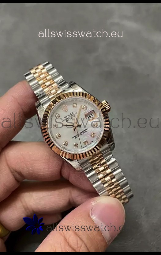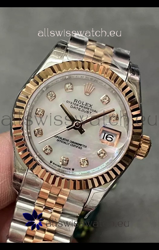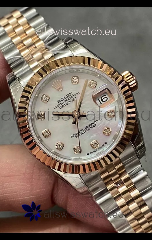 Rolex Datejust Super Clone Mother of Pearl Dial Rose Gold Steel Watch 28MM