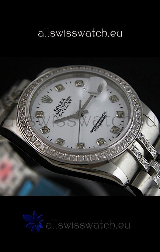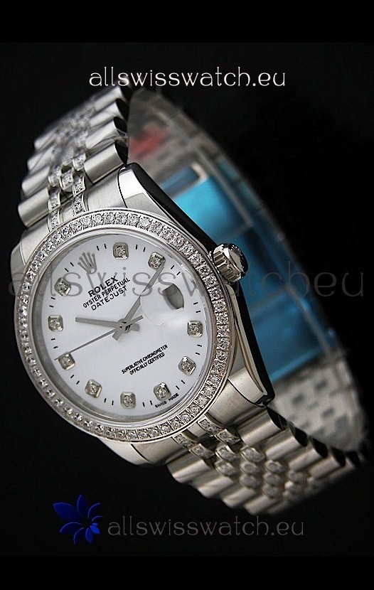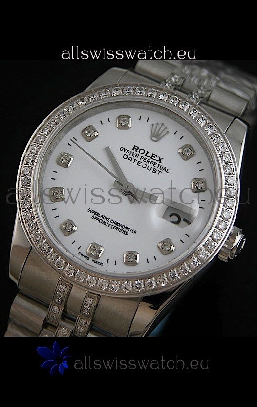 Rolex DateJust Swiss Mens Replica Silver Watch in Diamond Markers