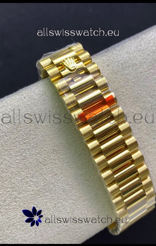 18K Yellow Gold Plating on 904L Stainless Steel New Design President Strap with Folding Clasps complete with Rolex Markings and Engravings