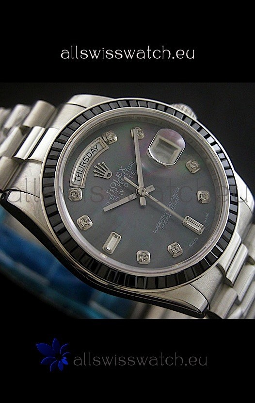 You're reviewing: Rolex Day Date 2008 Swiss Replica Watch in Mop Black Dial