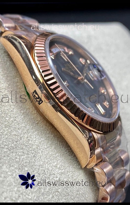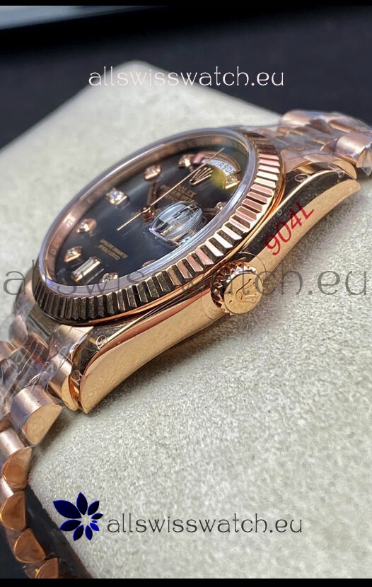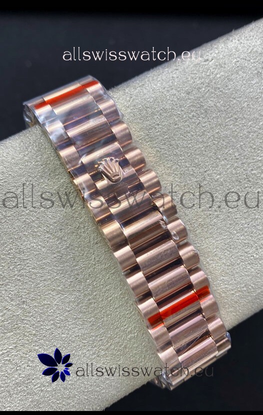 18K Rose Gold Plating on 904L Stainless Steel New Design President Strap with Folding Clasps complete with Rolex Markings and Engravings