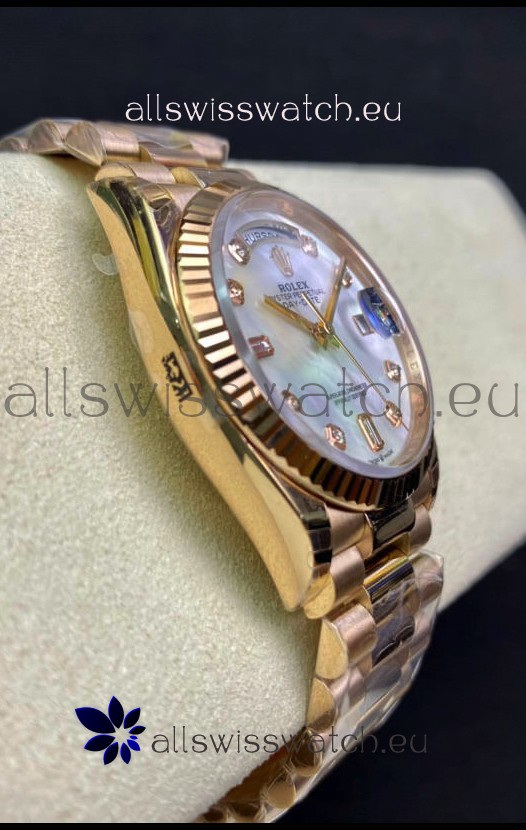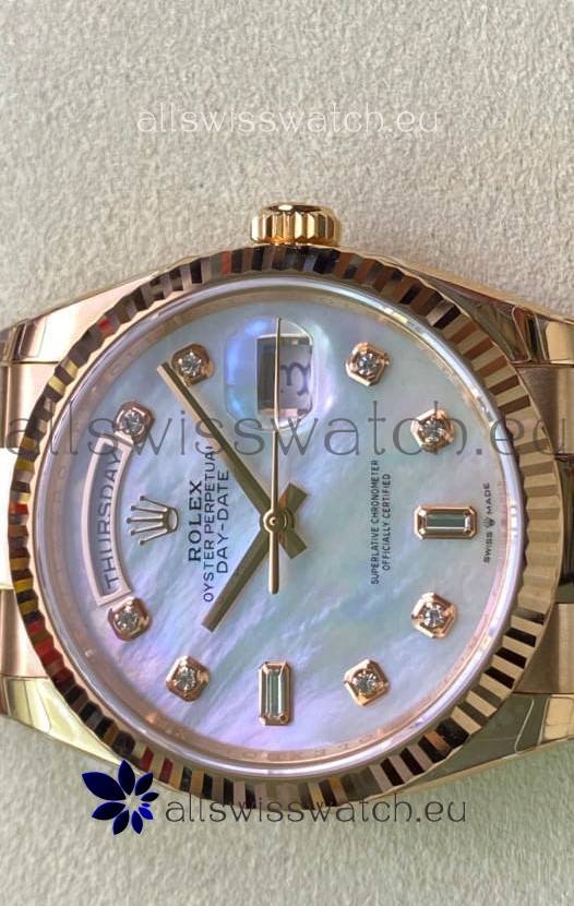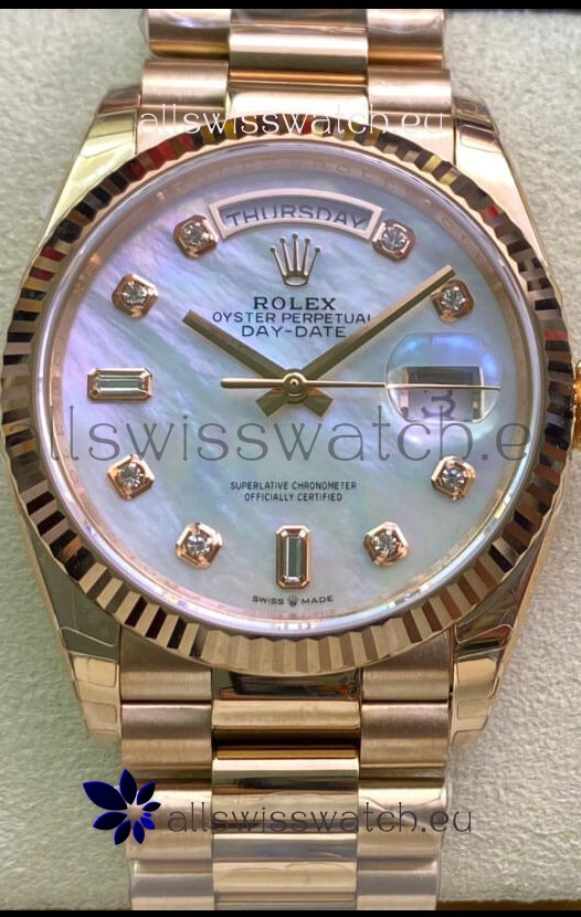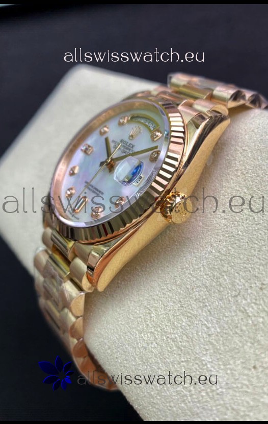 Rolex Day Date 36MM Rose Gold in White Mother of Pearl Dial 1:1 Mirror Replica Watch