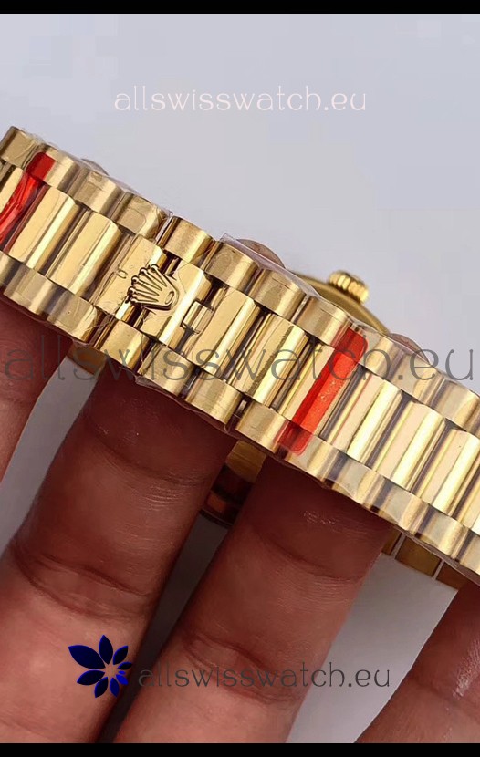 18K Yellow Gold Plating on 904L Stainless Steel New Design President Strap with Folding Clasps complete with Rolex Markings and Engravings