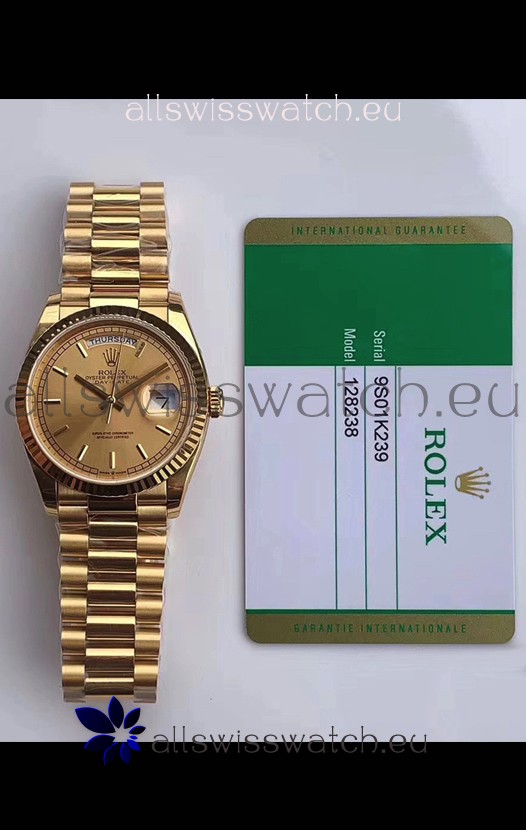 Rolex Day Date 36MM Yellow Gold M128238-0045 in Gold Dial 1:1 Mirror Replica Watch