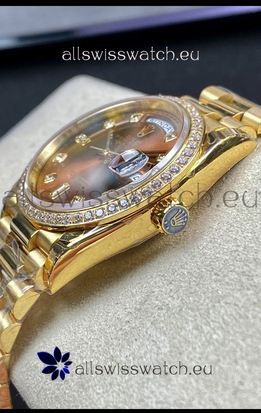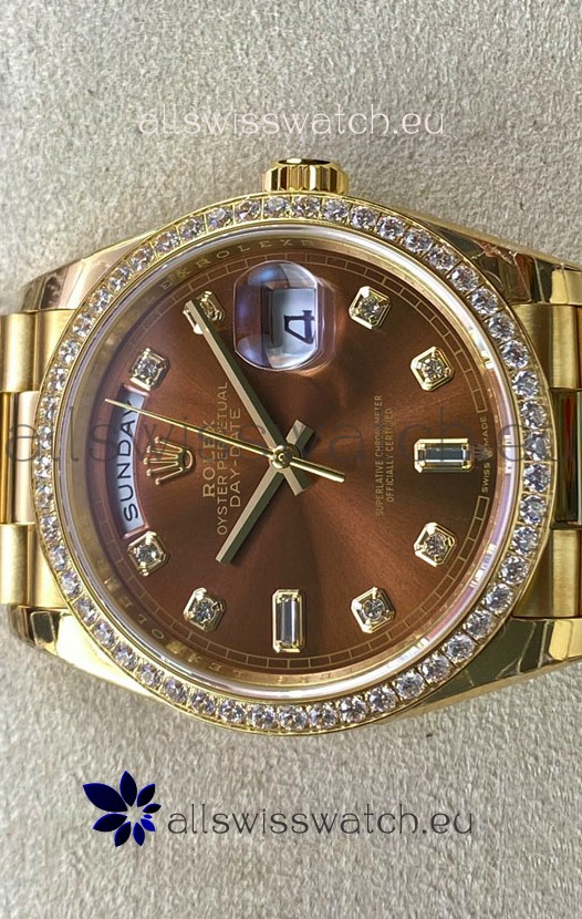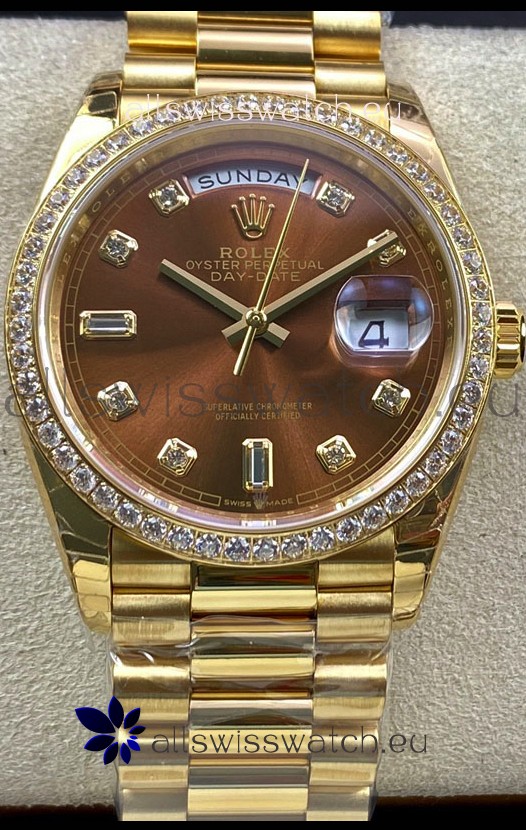 Rolex Day Date 36MM Yellow Gold M128348RBR-0005 in Brown Dial 1:1 Mirror Replica Watch