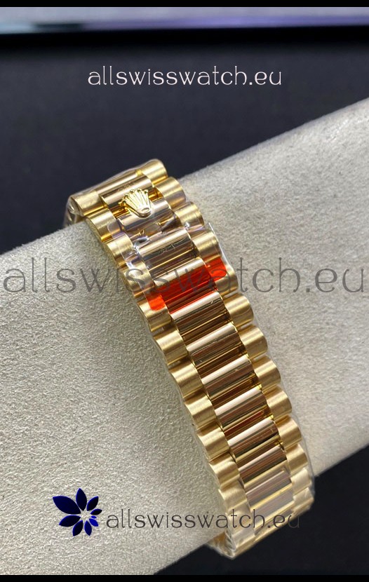 18K Yellow Gold Plating on 904L Stainless Steel New Design President Strap with Folding Clasps complete with Rolex Markings and Engravings